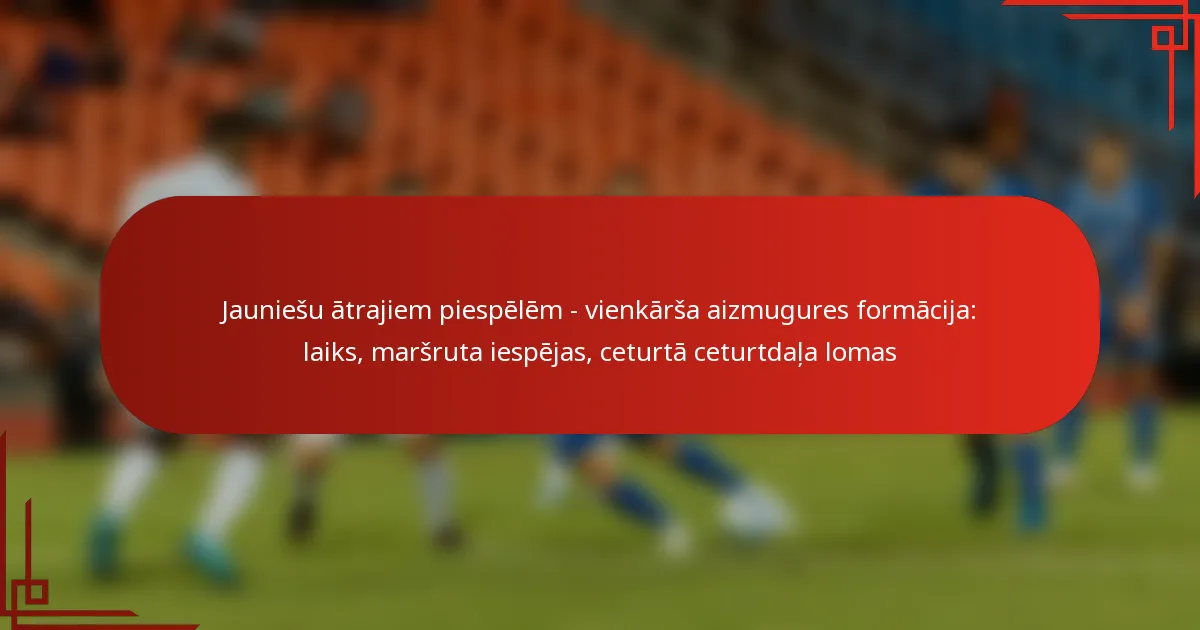 Vienkāršā aizmugures formācija ir efektīva uzbrukuma izkārtojuma shēma jaunatnes futbolā, kurā ir viens skrējējs aiz aizsarga, kas atvieglo ātru piespēļu izspēli. Laika saskaņošana ir būtiska, lai izpildītu šīs ātrās piespēles, nodrošinot, ka aizsargs izmet bumbu optimālā brīdī, lai saņēmēji varētu iegūt atstarpi. Ar dažādām maršrutu iespējām šī formācija ļauj jaunajiem spēlētājiem attīstīt savas prasmes, efektīvi izmantojot aizsardzības vājās vietas.