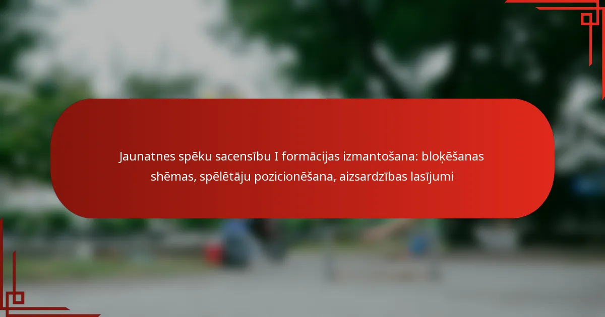 Izplatītas bloķēšanas shēmas I formācijā ietver caurumu bloķēšanu un zonas bloķēšanu. Caurumu bloķēšana koncentrējas uz konkrētiem caurumiem starp aizsargiem, savukārt zonas bloķēšana prasa spēlētājiem bloķēt noteiktu zonu, nevis konkrētu aizsargu. Katram shēmai ir savas priekšrocības, un to var izvēlēties, pamatojoties uz sastopamo aizsardzības izkārtojumu.